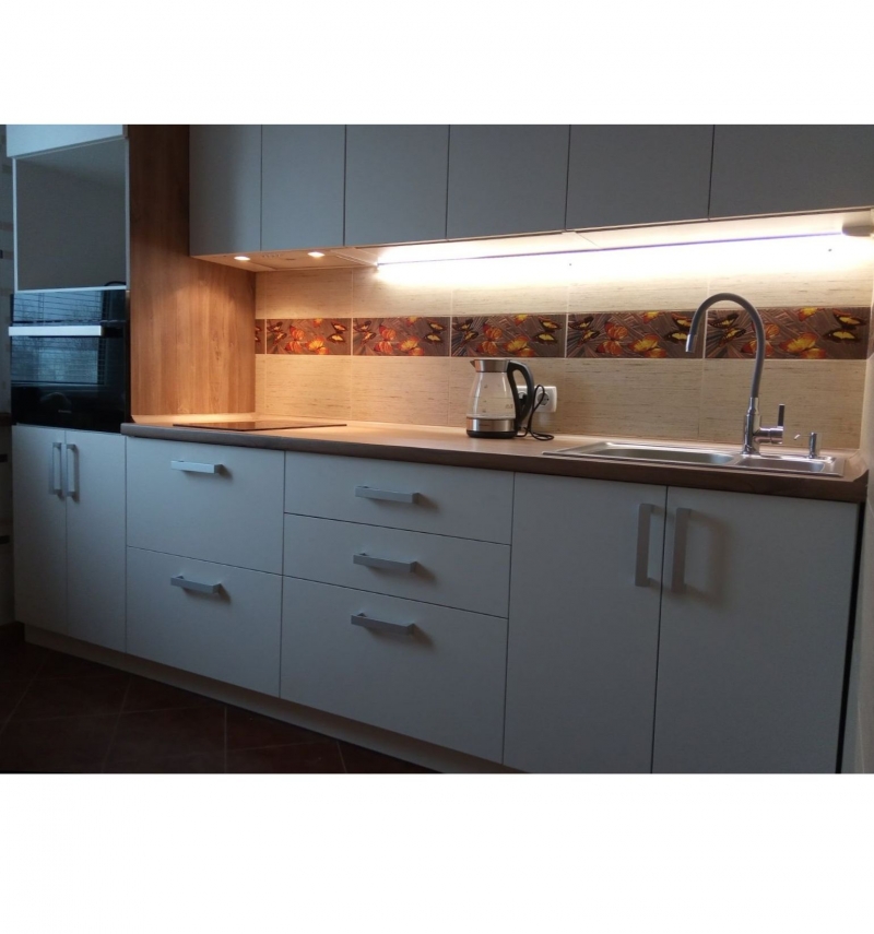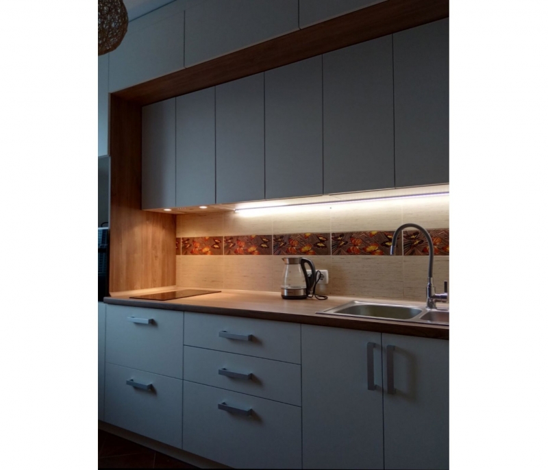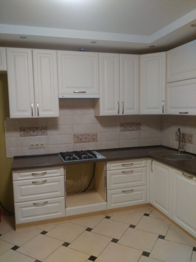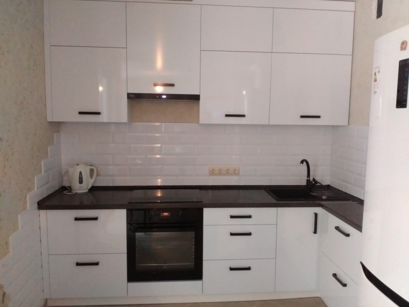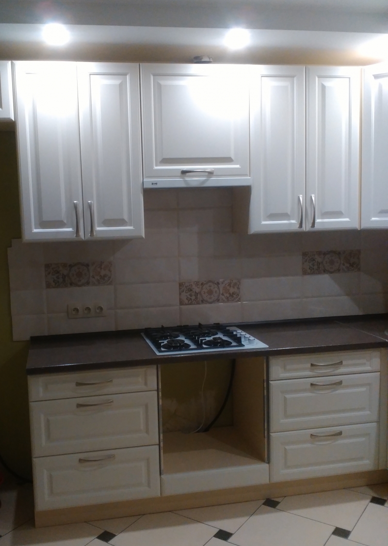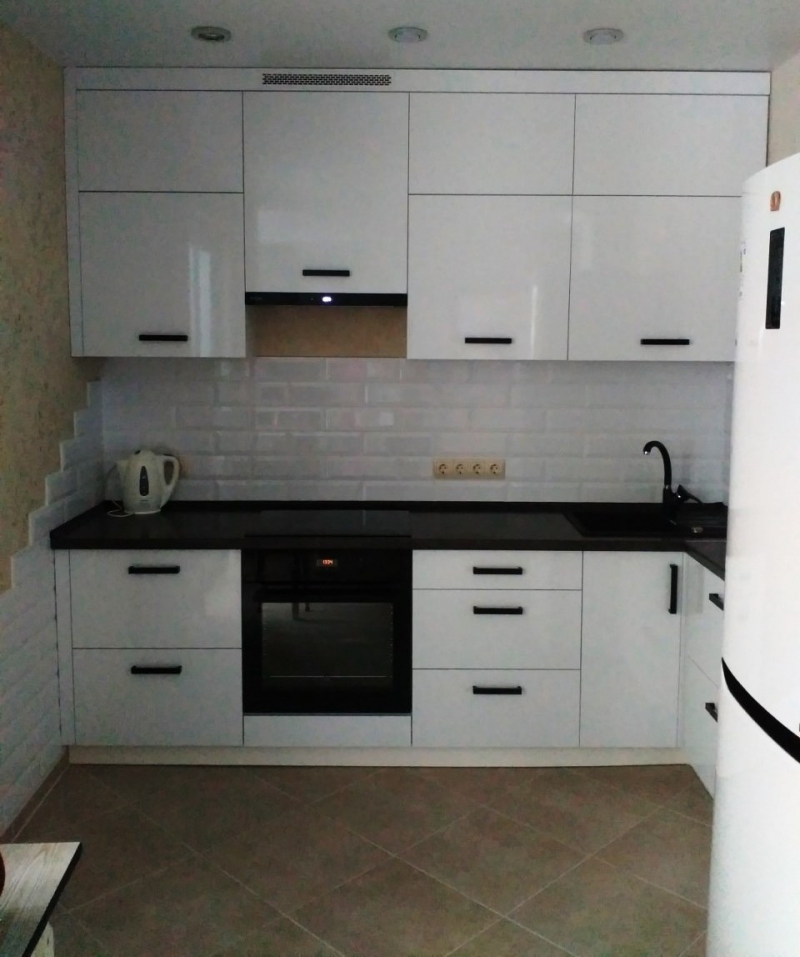 В данном разделе представлены некоторые наши работы кухонь на заказ. К сожалению, не всегда возможно сделать качественное фото. Часто помехой является освещение, т.к. монтаж занимает полный день; размер помещения не даёт возможность передать общий вид кухни; многие заказчики просят оставить защитную плёнку на фасадах до полной уборки помещения; и прочее.