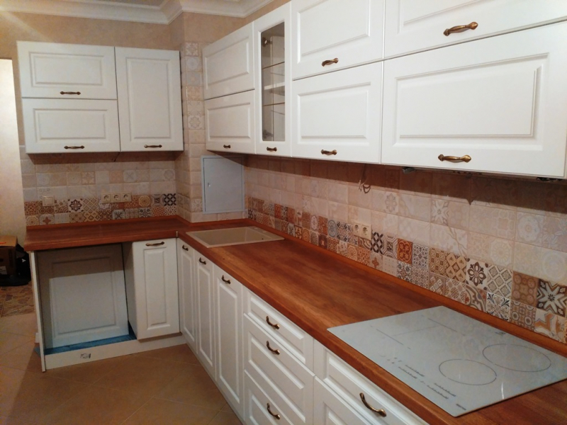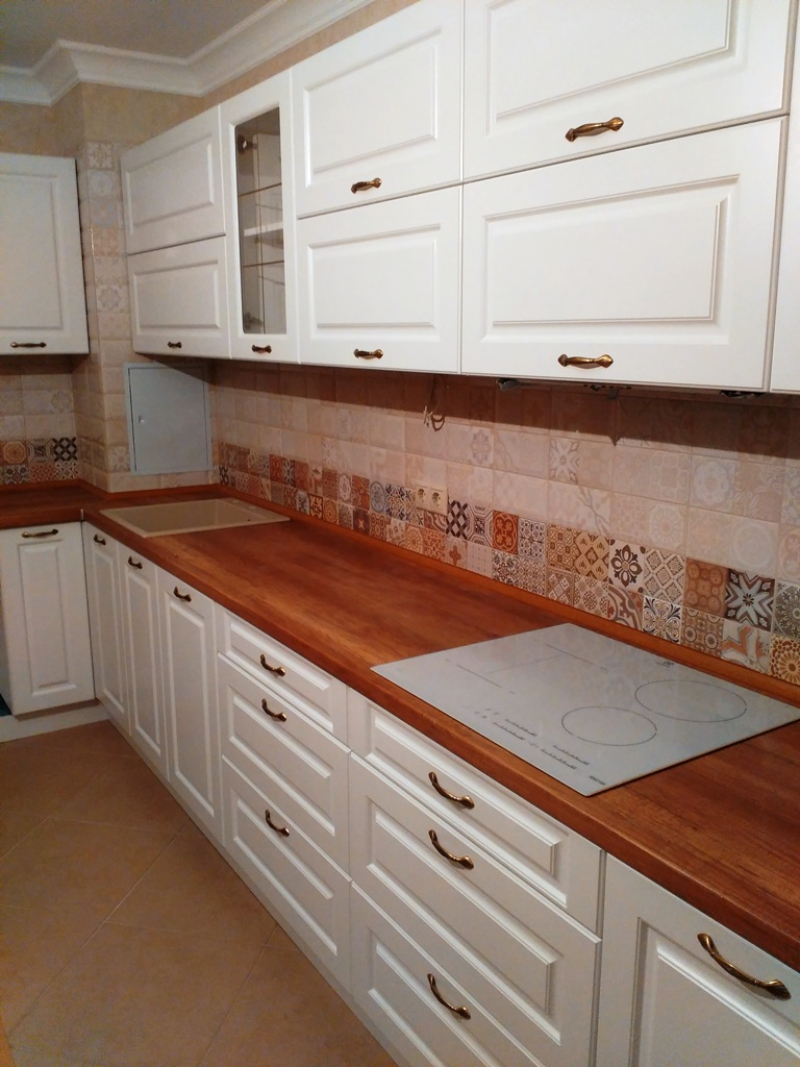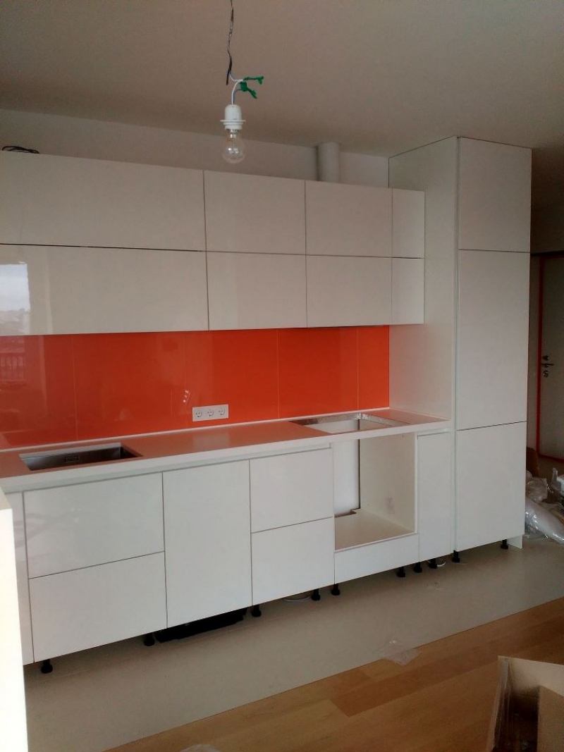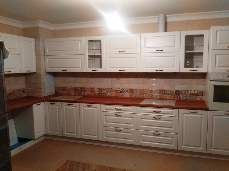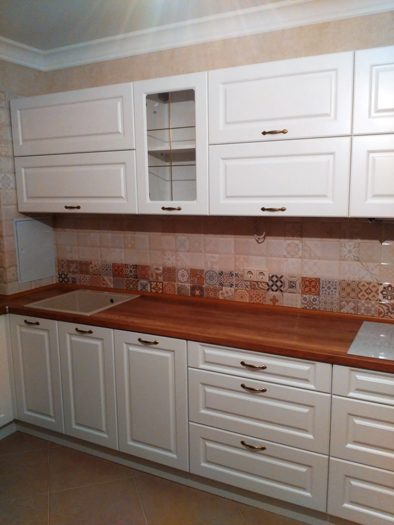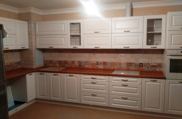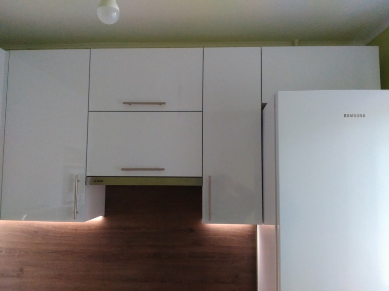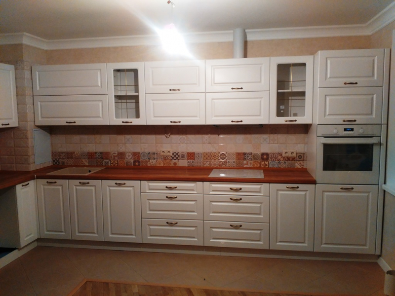 В данном разделе представлены некоторые наши работы кухонь на заказ. К сожалению, не всегда возможно сделать качественное фото. Часто помехой является освещение, т.к. монтаж занимает полный день; размер помещения не даёт возможность передать общий вид кухни; многие заказчики просят оставить защитную плёнку на фасадах до полной уборки помещения; и прочее.