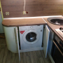 Кухня на заказ с фасадами "Лонгфорд" из крашенного МДФ белого цвета без патины. Столешница Getalit. Фурнитура Hettich, Blum. Встроенная вытяжка, стиральная и посудомоечная машина, духовой шкаф.