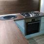 Кухня на заказ с фасадами из крашенного МДФ с фрезерованной ручкой. Столешница - постформинг Juan. Встроенный холодильник, варочная панель, духовой шкаф, вытяжка, посудомоечная машина. Фурнитура Blum, Hettich.