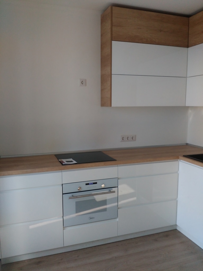 В данном разделе представлены некоторые наши работы кухонь на заказ. К сожалению, не всегда возможно сделать качественное фото. Часто помехой является освещение, т.к. монтаж занимает полный день; размер помещения не даёт возможность передать общий вид кухни; многие заказчики просят оставить защитную плёнку на фасадах до полной уборки помещения; и прочее.